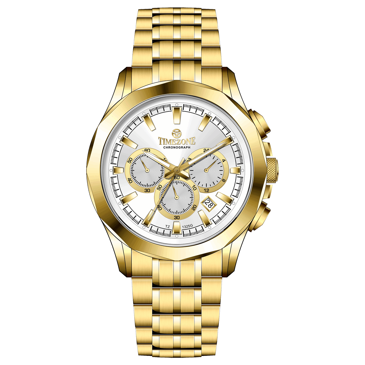 Designed with precision chronograph movement, a durable stainless steel band, and scratch-resistant hardened crystal mineral glass, the TZ-1325 combines reliability and elegance. Its 3ATM water resistance and working day-date display make it perfect for everyday use.